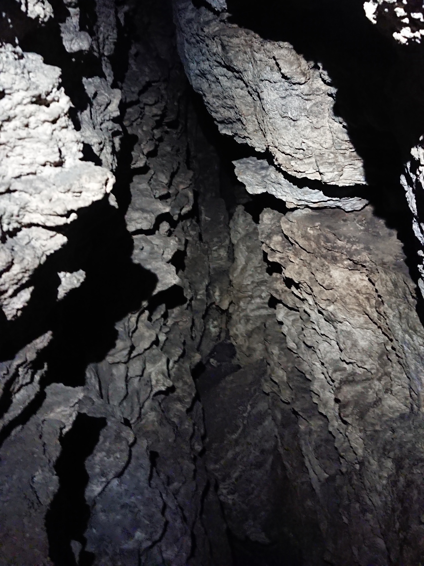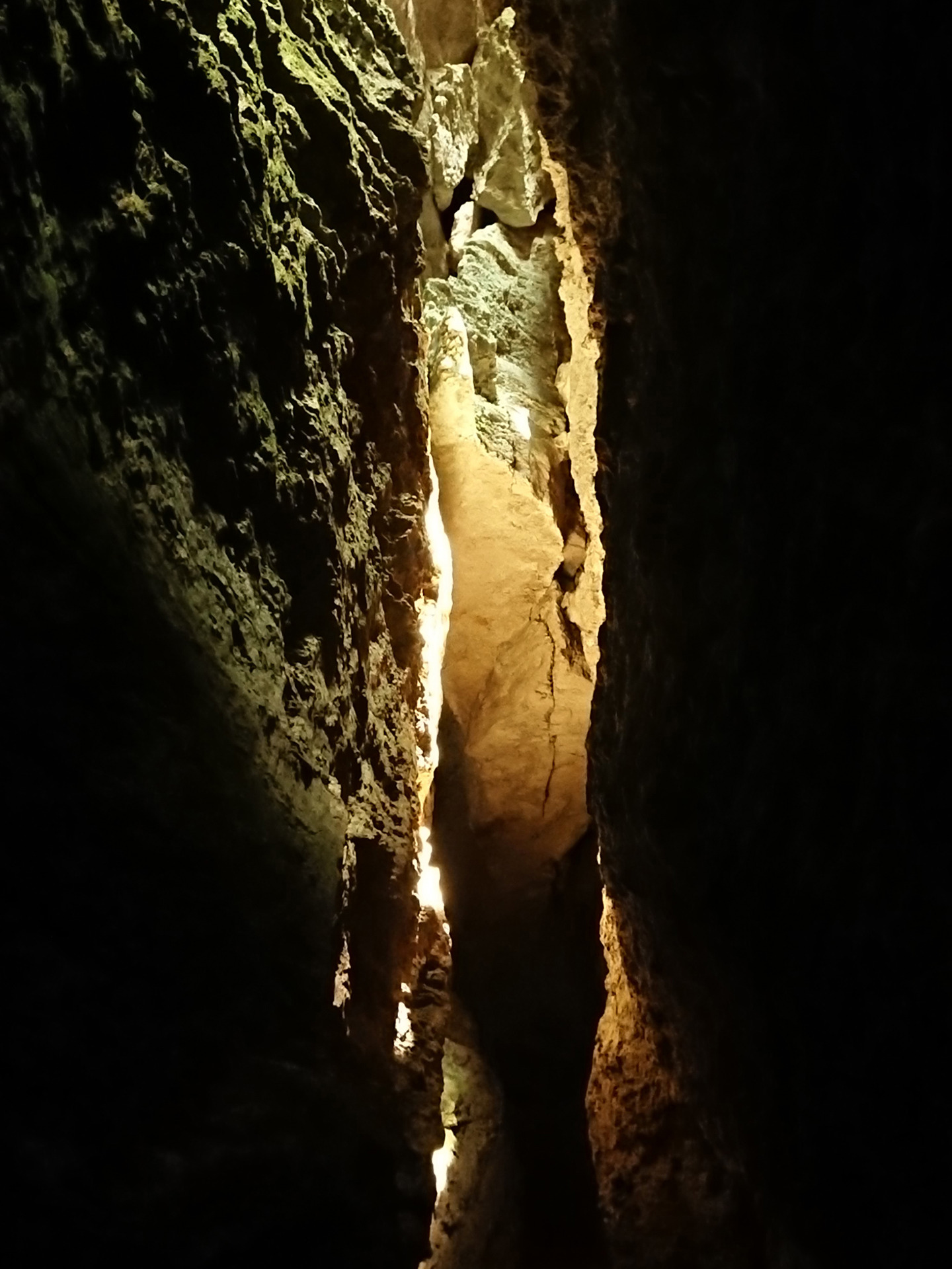 Am ajuns și la crăpătura aia mică de-i zice peșteră. Pregătim frontalele și ne aventurăm în bezna înfricoșătoare. Neindicat claustrofobilor. Se strâmtează atât de tare că abia te poți prelinge printre roci.