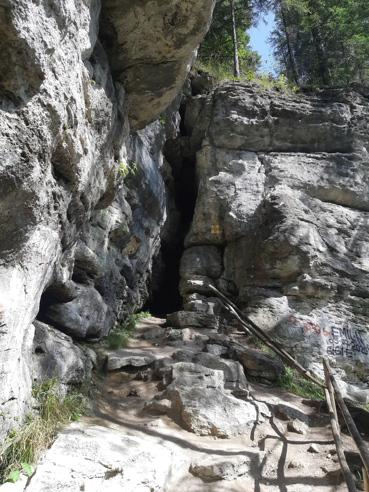 Vedere din interior spre stâncile de vizavi unde eram adineauri la Grota Tătarilor. Săpată în Stânca Minunilor și plină cu lilieci.