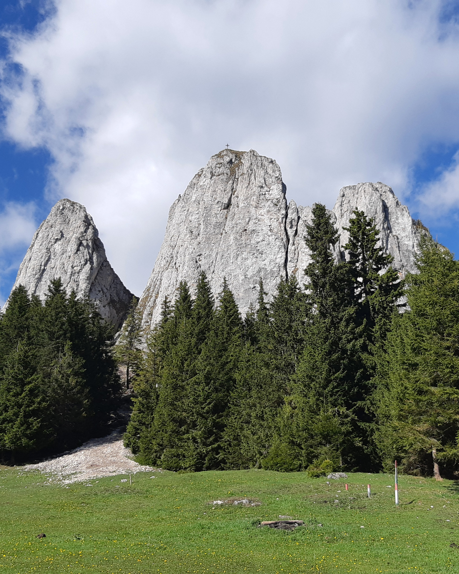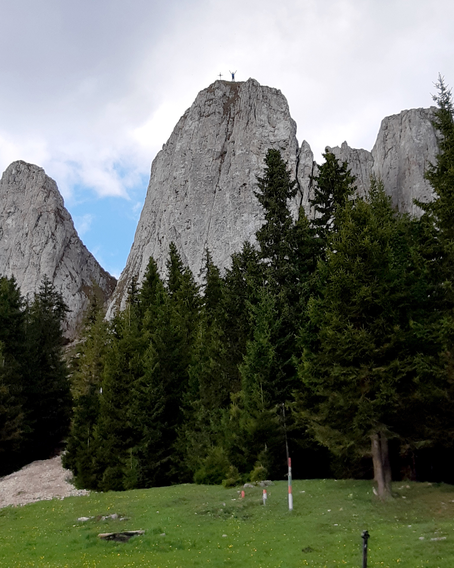 Vedeți voi furnicuța de sus de lângă cruce din poza a doua? E Adi. S-a cățărat sus pe Piatra Singuratică.